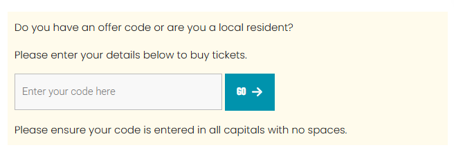 In order to purchase your tickets, you must use your postcode in capital letters with no space, as the code to 'unlock' the discount. There are only a limited number of local residents tickets available, split over two tiers. Once these tickets are sold out, local residents will only be able to purchase face value general entry tickets. Please head to the main ticketing website: https://bigfeastival.com/tickets/